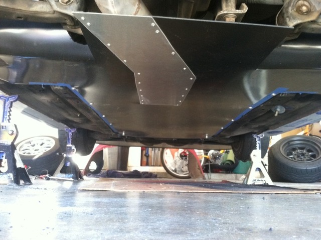 Here's what I have so far, mid-body section is done. It's 6 feet long, begins at the front subframe brace, so the opening in the front subframe around the oil pan is exposed - I think i'll leave it this way so there is some way for engine bay air to get out the bottom, and see how it goes. There's an aluminum section riveted in where the exhaust gets close to the undertray...