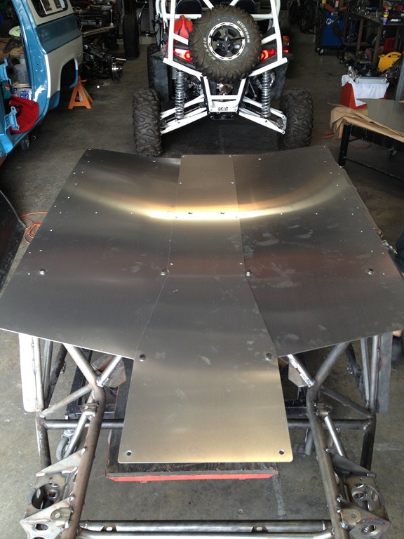 Right now we're trying to push air behind the radiator out the sides of the car--into ducts which haven't been made yet. Our exhaust is routed out the side, so the only thing I'm worried about frying is the bodywork, not the differential. A plate under the engine won't be placed until we have things figured out.