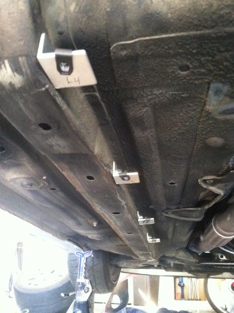 Here's the brackets that run down the center. It also mounts to two of the existing front subframe points, and brackets that I made on the rear subframe.: