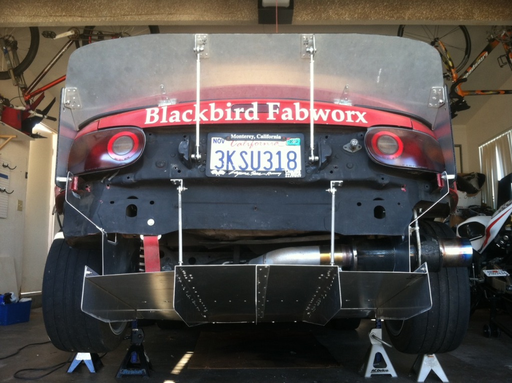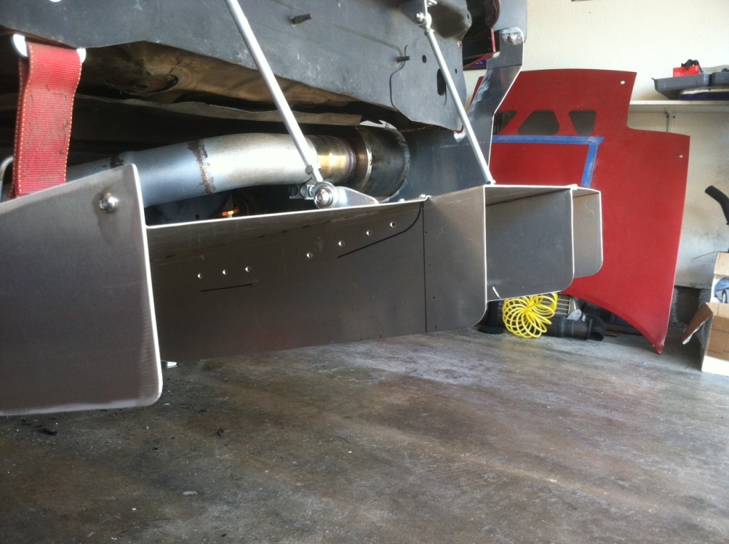 Mounted you can see the gap between diffuser and car where the diff heat can escape. Still need to add the NACA duct to get some cooler air to the diff: