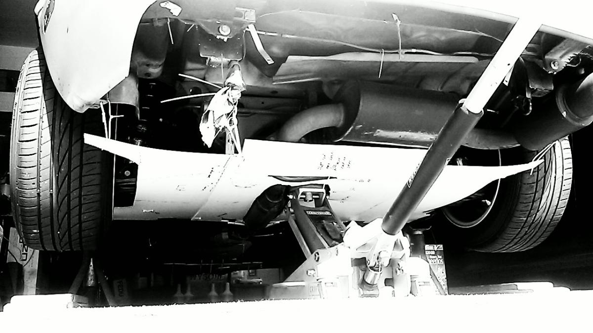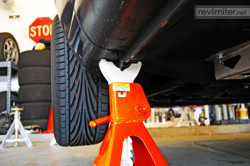 To get the car on 4 stands, I have to raise the front (wooden ramps, remove splitter, bends OEM bumper/airdam for jack lever to raise car), to get the rear high enough for my Craftsman stands (remove diffuser on ground, jack up at tow and/or diff). A quick release front bumper is something I want to incorporate into my revisions.
