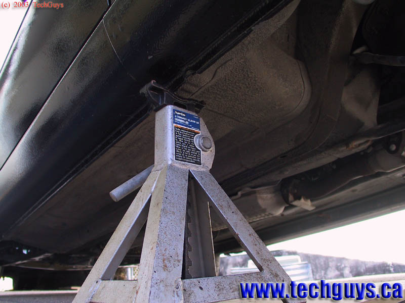 Jack the whole side at the pinch below the mirror, place stands at front and rear of the pinch,