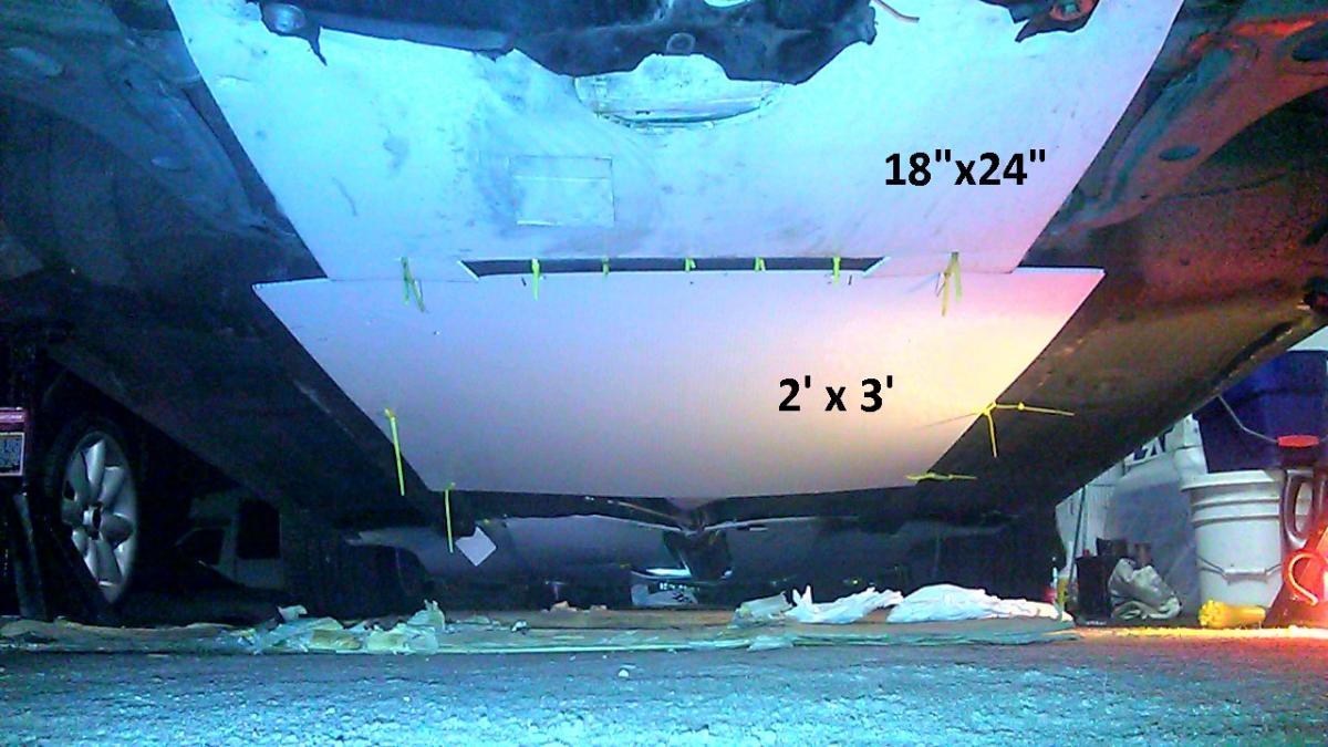 The 2'x3' after the front diff was experimental for material choice underneath a hot tranny and hotter pipe. Only the pipe before the cat gave issues.