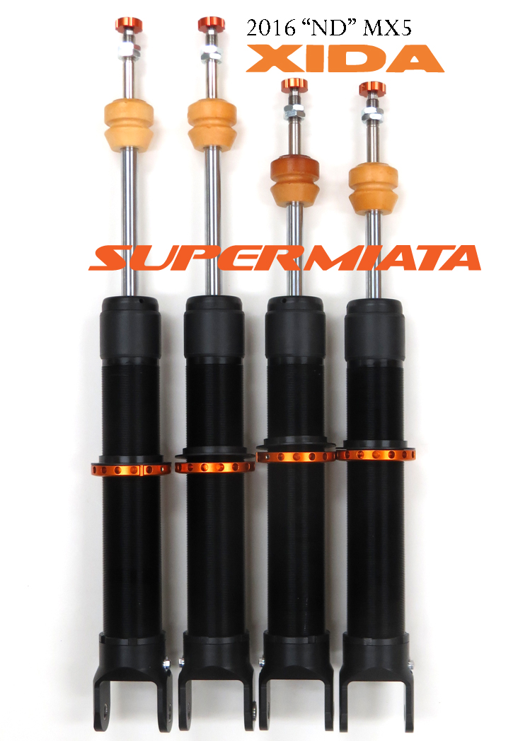 Much like the way a lowered Miata has really messed up roll centers but somehow manages to go over bumps, steer, grip, stop and put down power faster than one that sits 2” higher, the Xidas manage to excel in their intended environment despite the intentional hysteresis difference front to rear. The new ND Xida has no such space constraints so we ended with up huge bump/droop range and no hysteresis anywhere. Big tubes, lotsa N2.