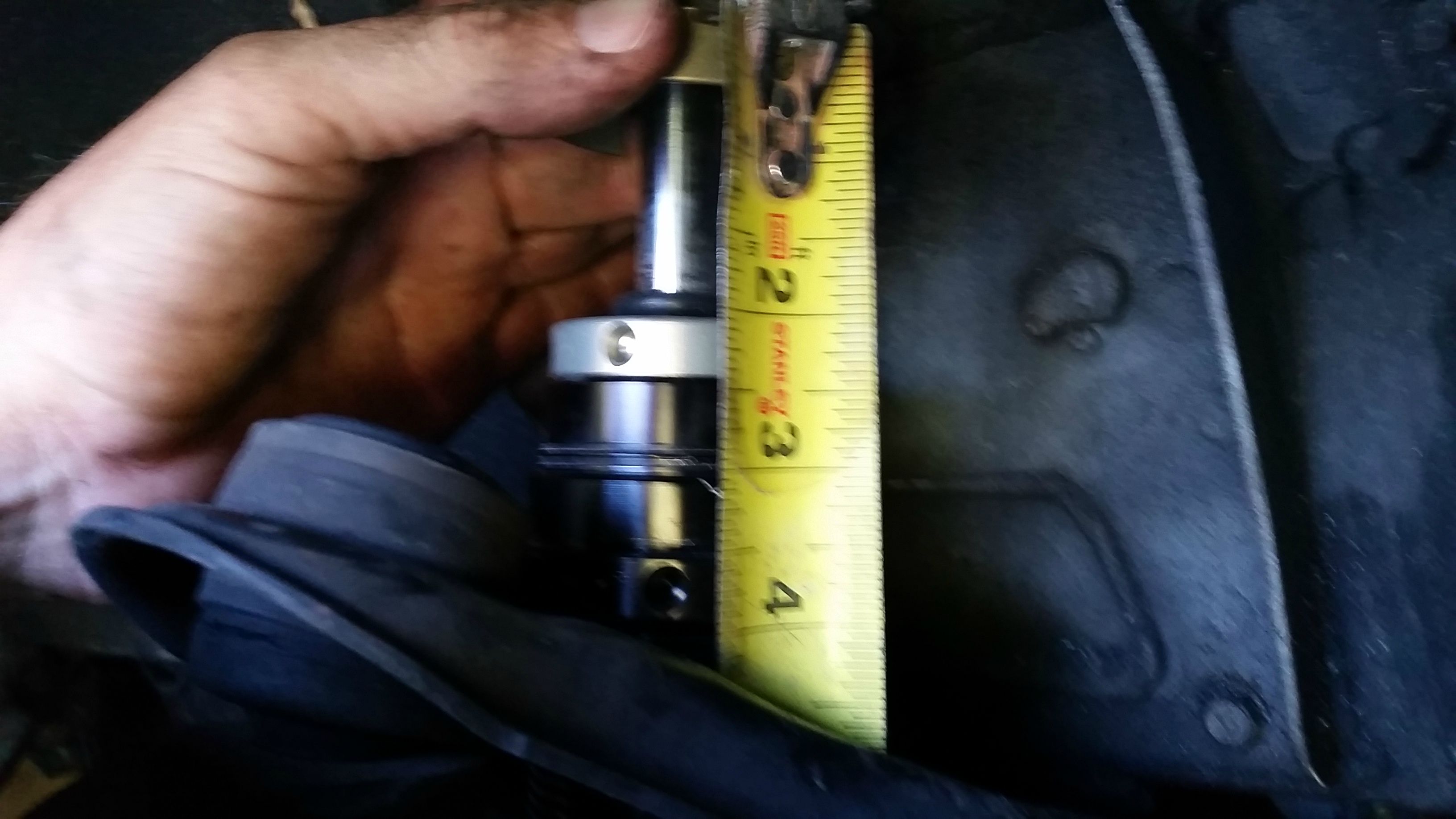 Anyhow, back to my inconclusive results from a bunch of sorry pictures. This shot shows the shock compressed to travel ring and there's 3.5" from spring seat to seat.