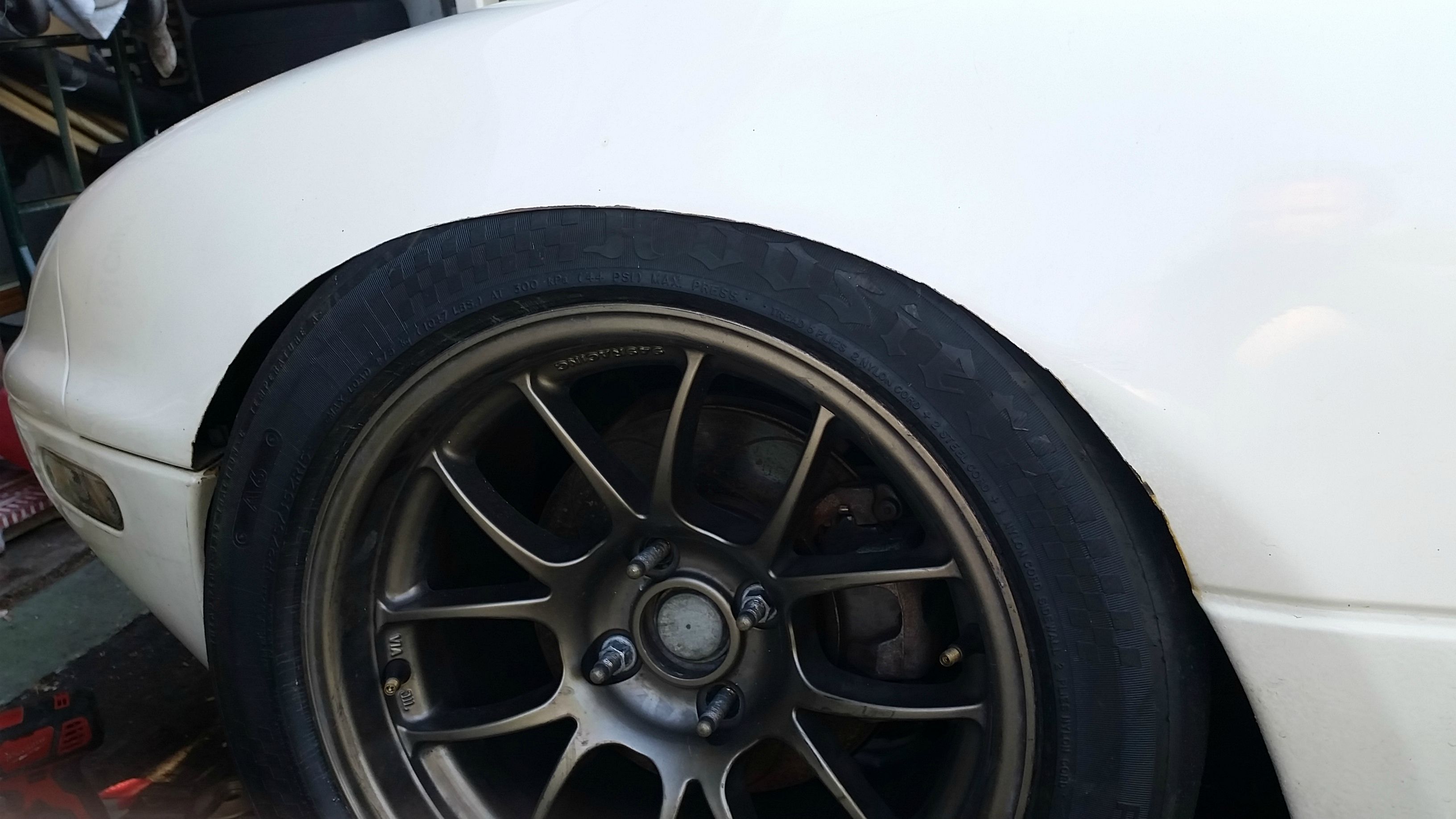 This test is inconclusive as the fender needs to be cut for better results. Since I am going to NB front steering and suspension components, except lower arms, I will need to cut the