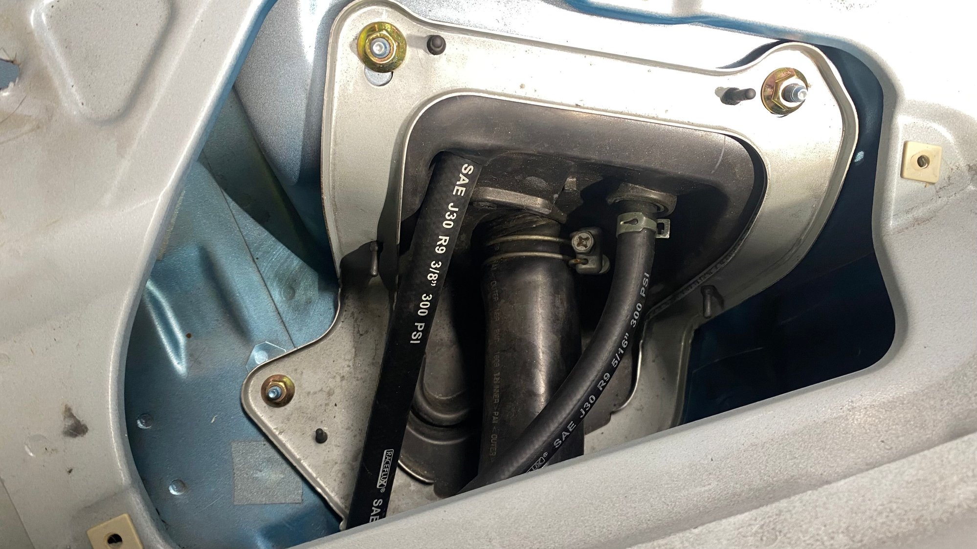 Note: My NB2 has ABS, which makes everything harder as it has extra brake lines that take up room right where fuel lines pass up into engine bay.