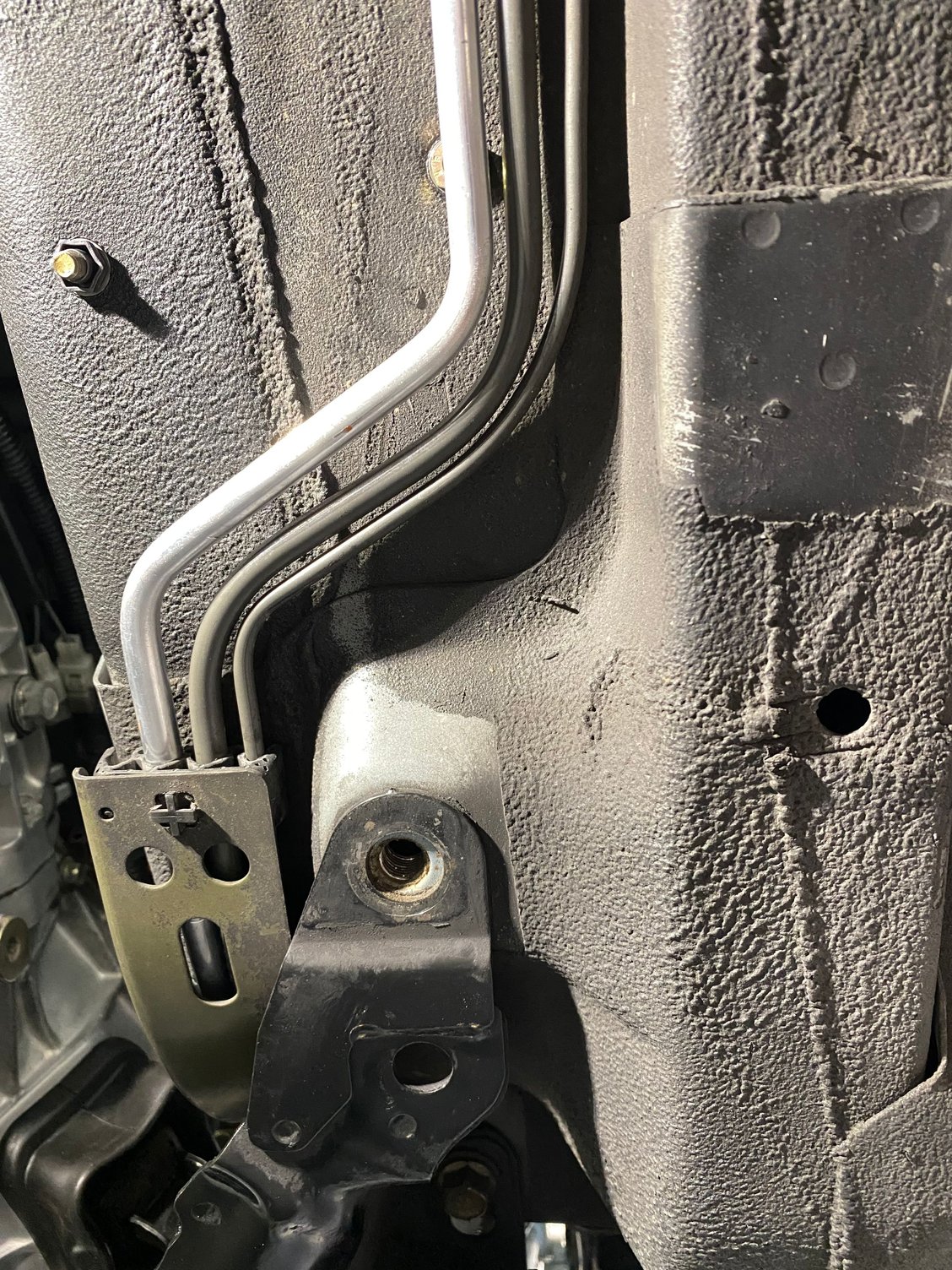 Jacked car, removed the underbody braces, a bunch of line supports as well as the rock guard between the engine bay and floor and removed the vapor line. Which is a PITA as it has multiple line clamps and a compound curve.