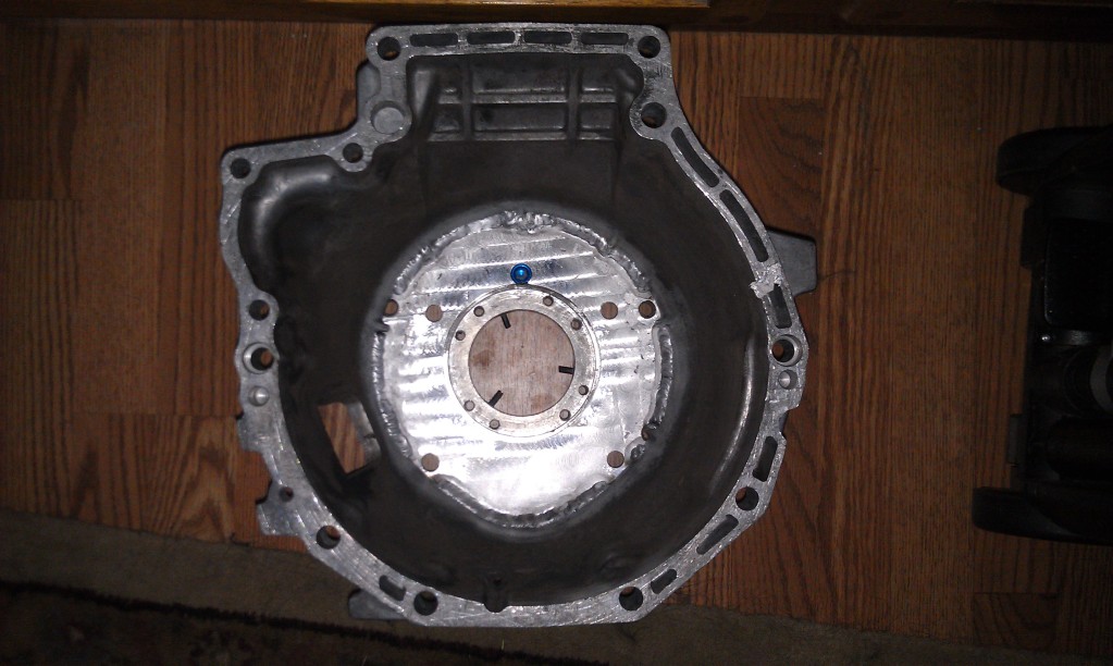 I knew the flexplate was broken, I discovered it when I got home from the track and pulled the starter. I thought that I would document the bell housing work that was done. Quaife offers a miata bell housing but it is about $ 700 and I doubt that it would have put the transmission back in the same orientation that my current one off bell housing does.