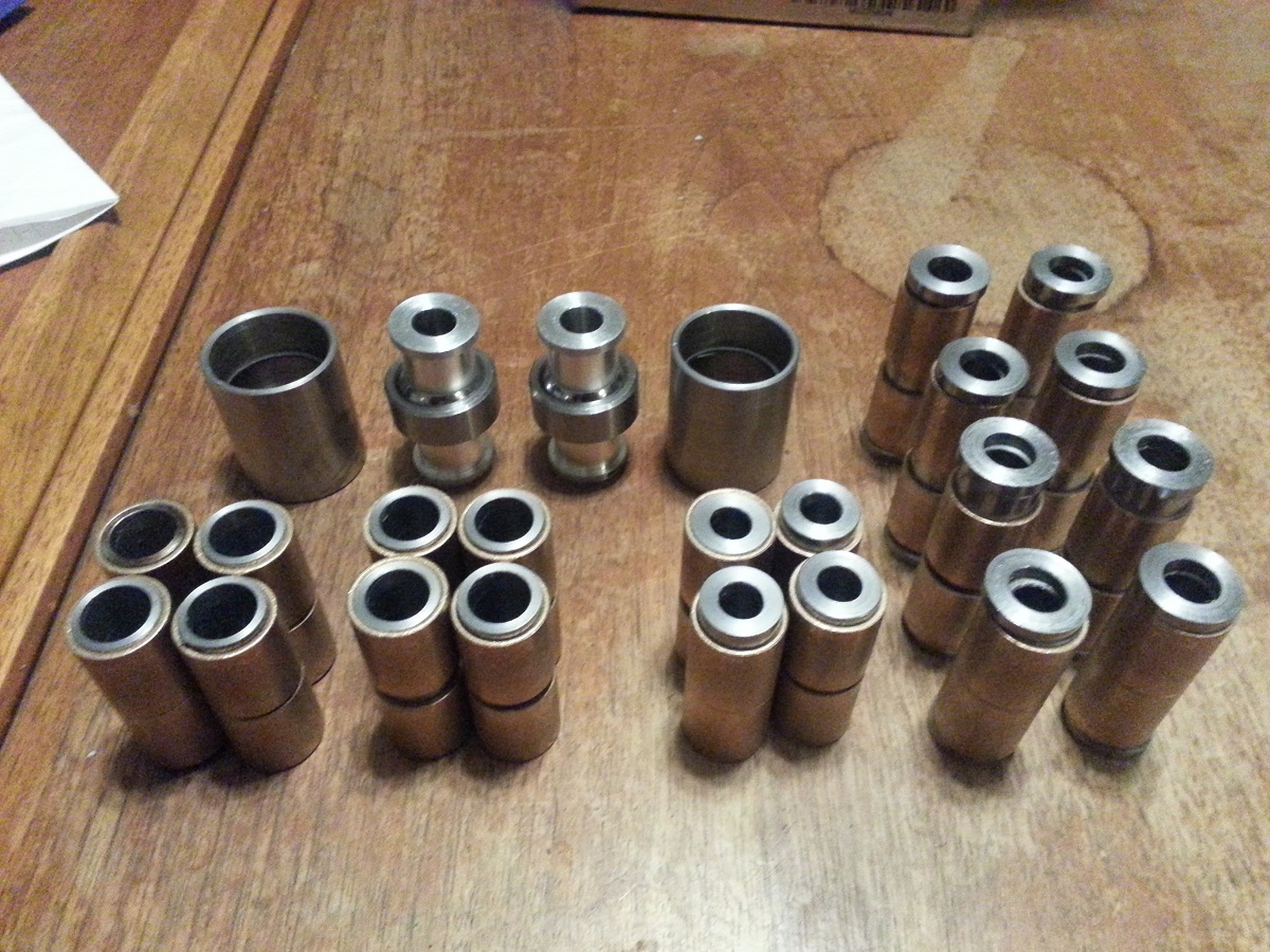 So the sleeve just needs to have the same ID as the normal sleeves in the urethane bushing kit, and then the OD needs to match the ID of the bronze bushings.