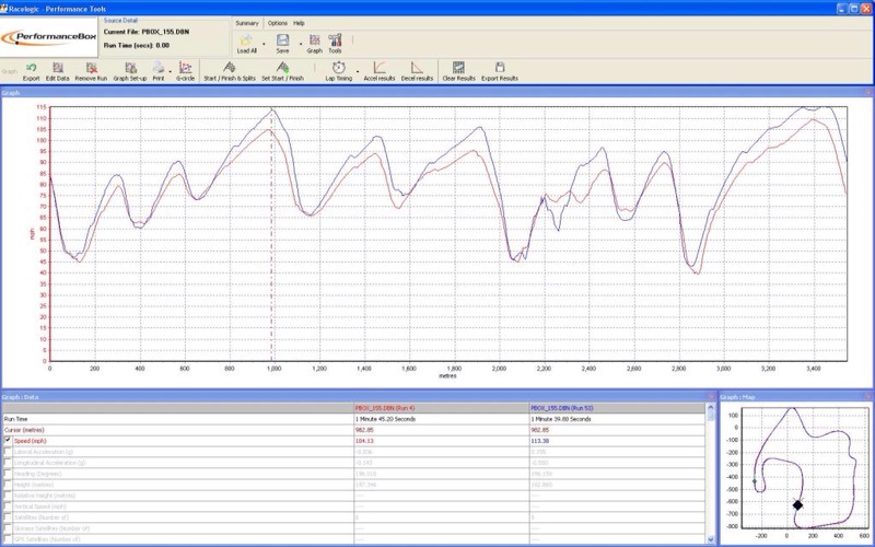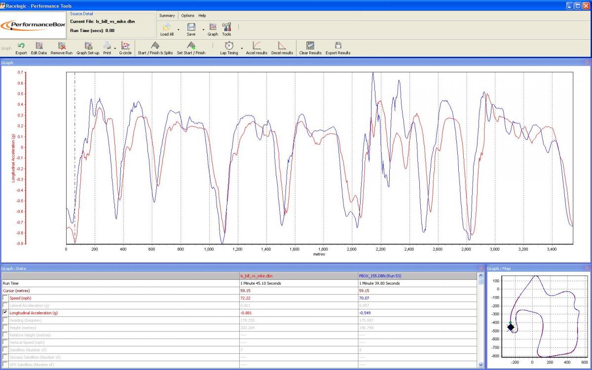 My friend with a c5z was at LS with his performancebox on the same day as me and I thought it would be interesting to compare speed vs distance on our best laps.
