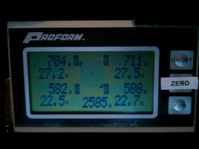 Left Right Front 648 lbs 603 lbs Rear 605 lbs 553 lbs Total 2409 with driver, 2251 without