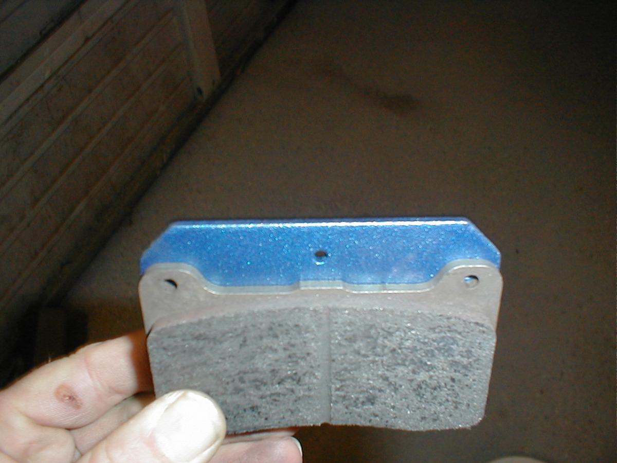 Blue backing plate is a Dynalite pad back to back with the used Dynapro radial pad. The shape and area of the friction material is Identical between the two. You can really see how much less material sticks out past the radius of the rotor with the DynaPro radial. Both calipers use just as much radial space as there respective backing plates do.