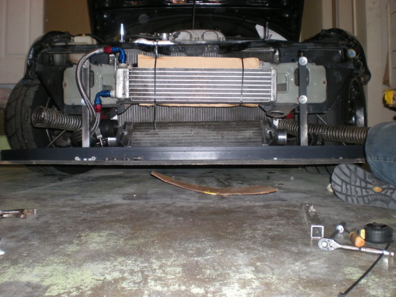 It actually works pretty well even with the massive 600hp Precision core that I was using in 2011. I used the same fundamental ducting techniques (IC duct low, radiator duct high) with the larger intercooler and was able to keep IATs under control, which I wasn't able to do with the small IC laid back like that. It's surprisingly how little fresh air you need to feed to the radiator, so long as you duct that small amount of air extremely well.