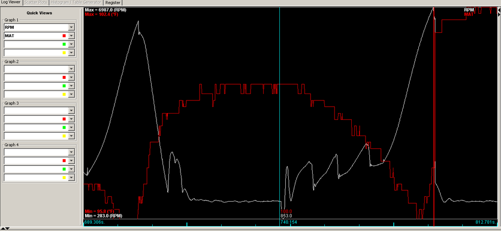 <p></p><p> </p><p>Your coolant temps are rock solid because you have the IC tucked up inside the nose and not blocking any airflow to it.</p><p>That's also why your IAT's are high. If you want lower IAT's, lower the IC into the airstream, and suck it up that the rad will now have to work much harder to cool the engine.</p>