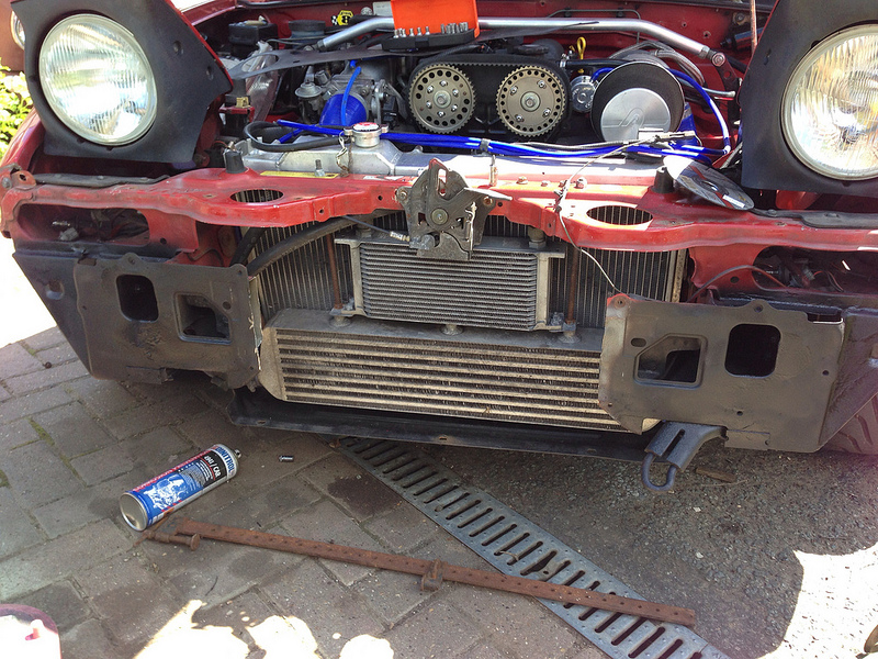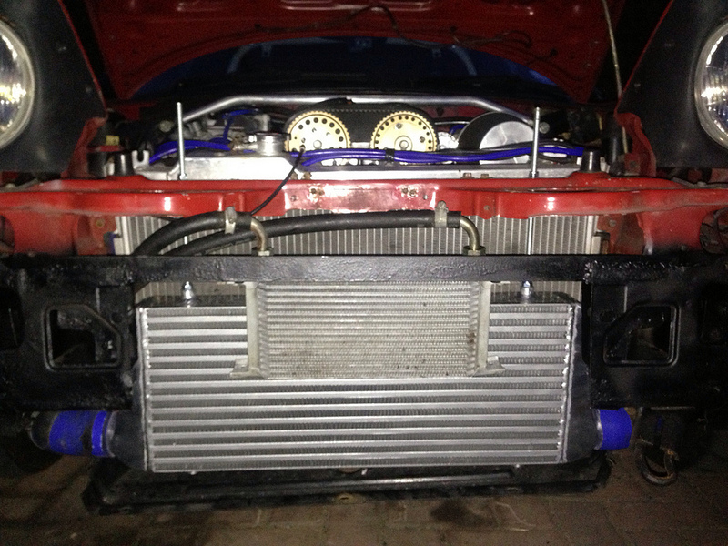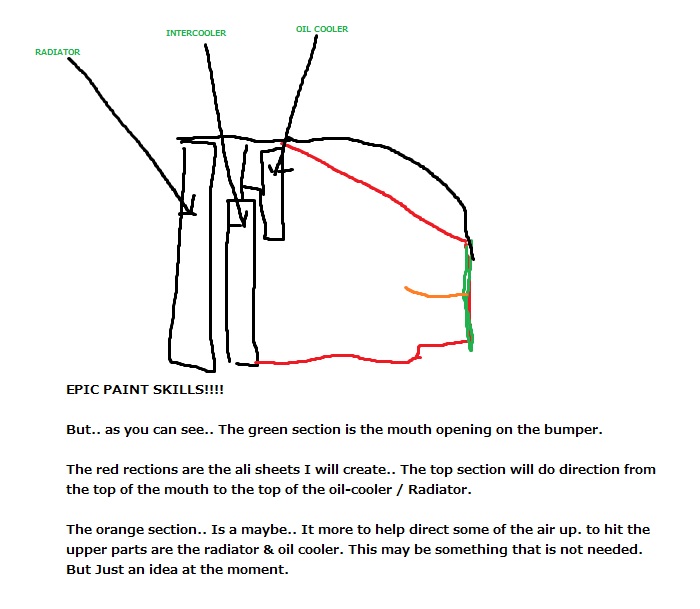 The plan is to run a larger intercooler. Get some aluminium sheeting and create some ducting.