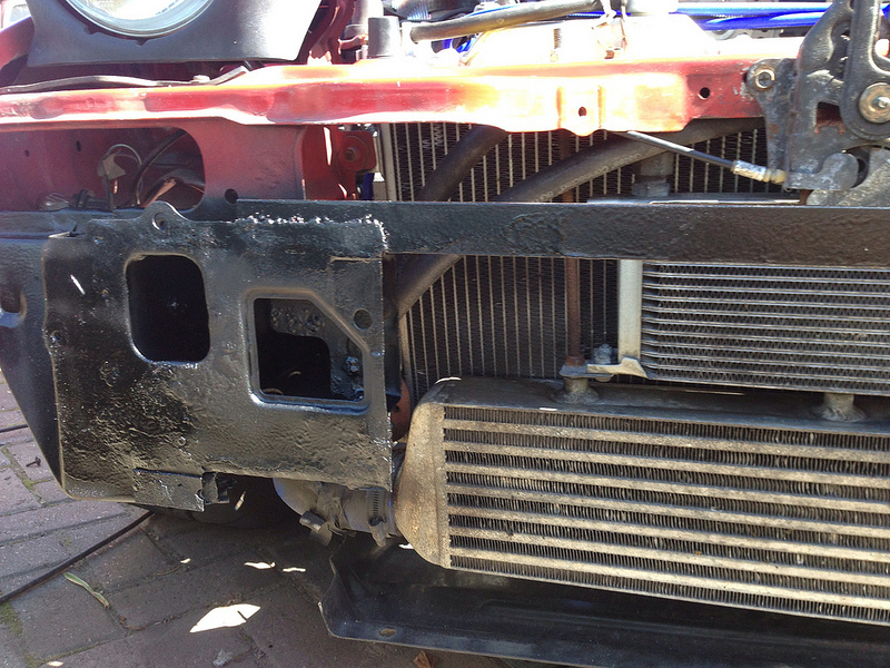 Now.. I feel with the cross member removed (with a thin support bar in place) I can create some ducting from the top potion of the bumper mouth going to the top of the radiator.