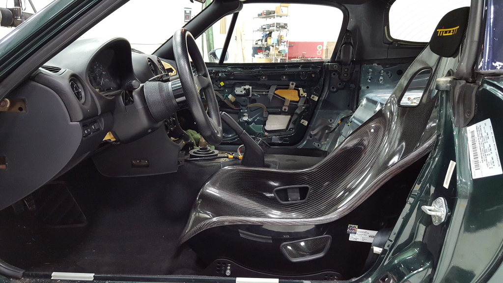Cyotani- I have a regular Ultrashield SM seat bolted to the floor (tunnel notched and humps removed) in my white car right now and it's only barely better than the Kirkey in the picture I posted above. My head is just barely lower with the ultrashield because there are no shoulder wings to interfere with my cage, so I can get a little more recline. It still isn't great because it keeps my back completely straight, but it's way better than the Cobra Suzuka I tried at one point.