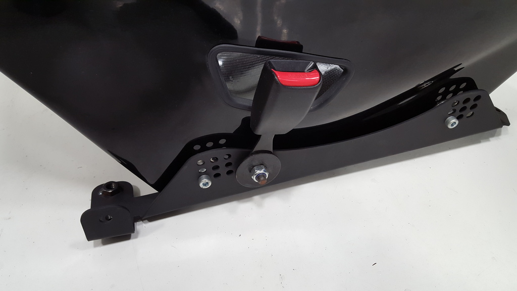 The seat is on the floor with the trans tunnel notched and all the stock mounts removed. Without space between the seat and the floor, how do the anti sub belts get mounted far enough back?