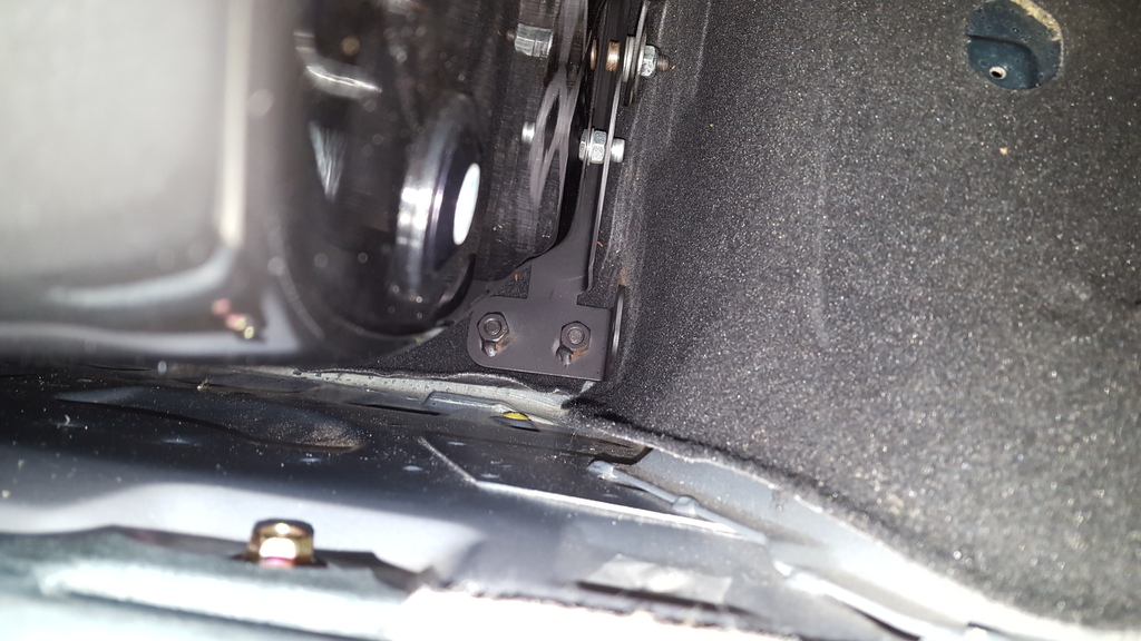 I left the rear humps in for now, which required spacing the rear of the bracket up about 10mm. The brackets are designed so that the bottom of the seat is flush with the bracket, so removing the humps would allow the seat to be completely on the floor. I'm already on the verge of being TOO low with this seat, so I left the humps in for now.
