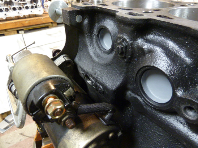 OK, pics. As you know the first hole was fail, in the way of the starter. It will get a plug with JB weld on the threads. The second hole above the "P" also makes more sense. This is where it will go on the built block. Even with two vacuum cleaners going it was still a PITA to clean and ideally should be done at the beginning of a build. This would be impossible with the pan on. You couldn't flush all the shavings out the oil hole.