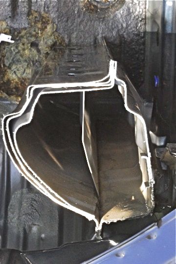 The other two braces live above where your feet go in the footwells. One connects the footwell and the other side of the panel Frog arms reinforce. The other connects the footwell panel and the tranny tunnel.