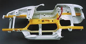 Below is an image showing the primary structure for an S2000 marked in yellow. See the diagonals (part of the X) tying into the special backbone zone? If Honda did not send diagonal structure right to each corner of the car and thence to a designed backbone, the car would not be as torsionally rigid. I'm sure you've experienced S2000s, so you know they are quite solid. Of course Honda had quite a bit more money to spend since they started out at 35k.
