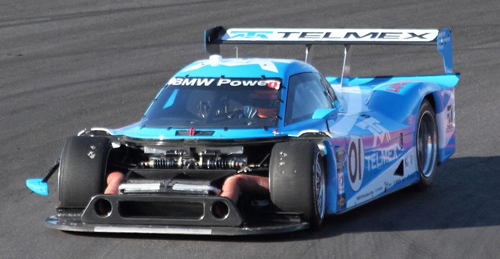 Here is a photo of what happens when you jump a curb at the apex and launch your Grand Am prototype up in the air a foot or two off the track. When the car came back down it knocked the nose completely off the car. He pitted, his crew taped on a new nose, and they returned to the race, fighting for the lead near the end of the race. The tape (more like a big patch) they used was even color-matched to the blue paint on the car. I digress but the whole thing was pretty cool.