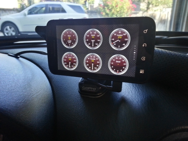 Currently setup to take OBD2 data and display it using torque and do poor mans gps lap timing using trackmaster. I find that a 5hz BT gps adapter is far more accurate than the built in. Power UP/Down is painless, as the phone will carry stand by battery for days. Glare isn't all that bad but you have to have brightness cranked up on max during the day. I'm probably going to get an anti glare screen protector to try that out. If that fails I could see making a little shrowd for it but that will cut down on fat finger access.