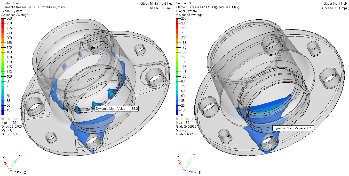 Excuse the dumb question, but in bump wouldn't the load be distributed between the bore of the wheel and ALL the wheel studs? It appears that the force is applied to only one wheel stud. But if one stud can handle the load then the rest is gravy.