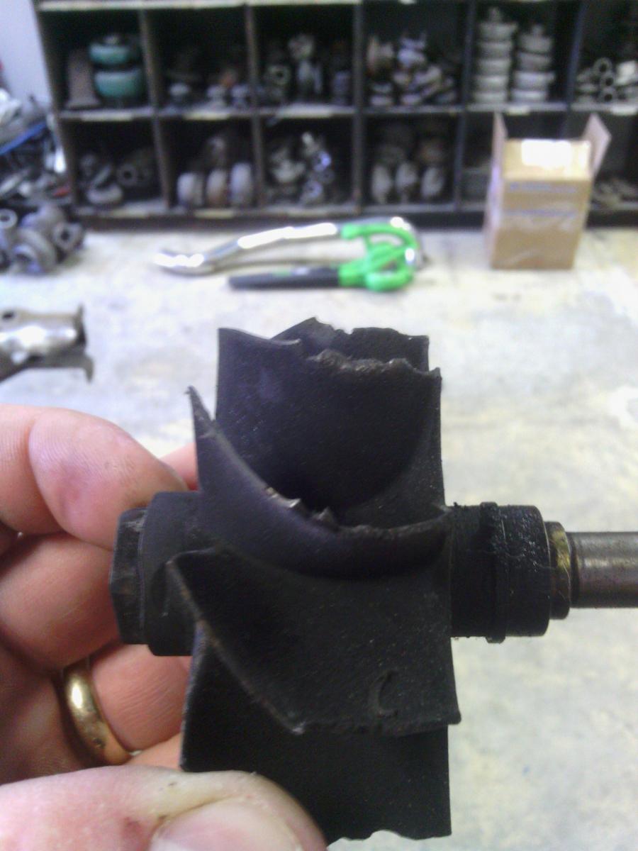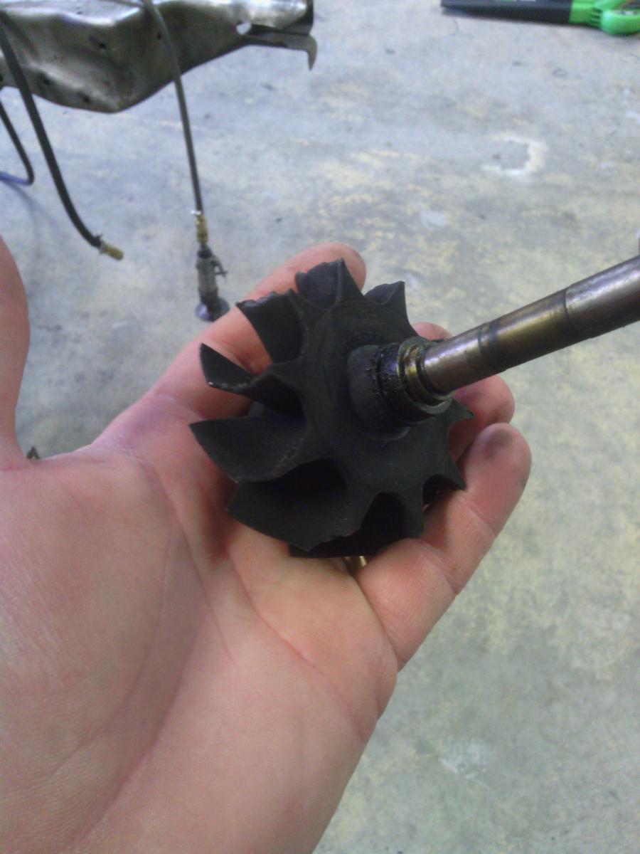 My TOW vehicle (7.3 Excursion) recently had a churbo upgrade along with some stage 1 injectors (still needs pump upgrade). And after the orignal turbo was yanked out, we discovered why I couldn't get 30# out of it -
