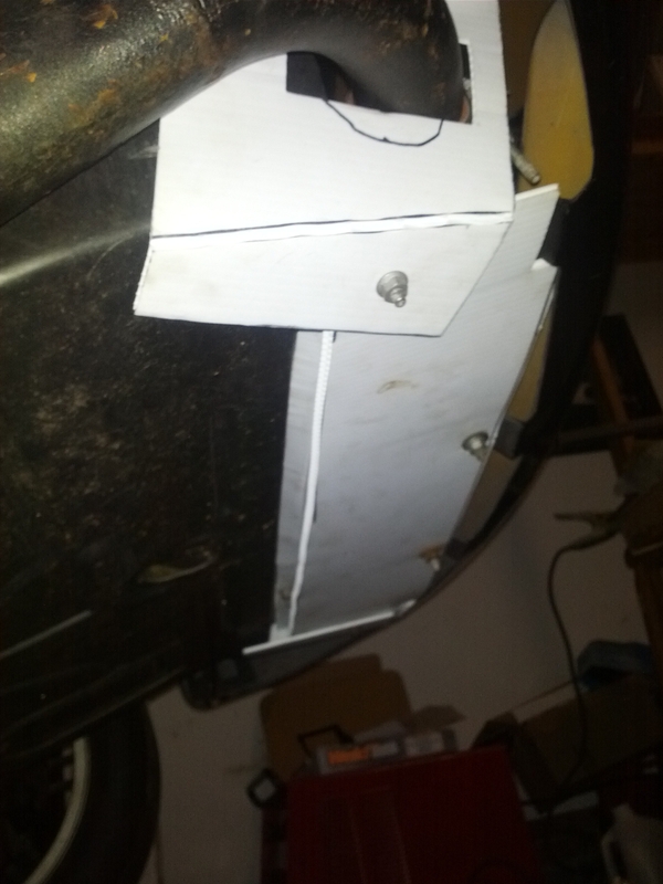 The front bumper is not removed in those pictures. Also using cereal boxes, or card board of that thinness is the easiest way to mock up everything. I think I have about 5-7 hours total into my ducting work. Total tools needed were a box cutter and scissors.
