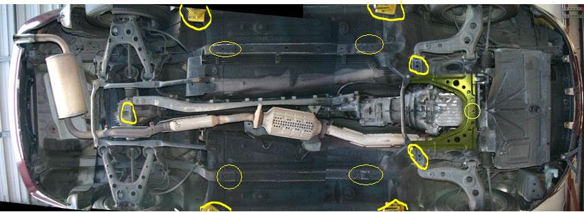 I've since added another 30x36" panel after the front subframe-- it ends halfway through the catalytic converter, is inline with the frame rails.