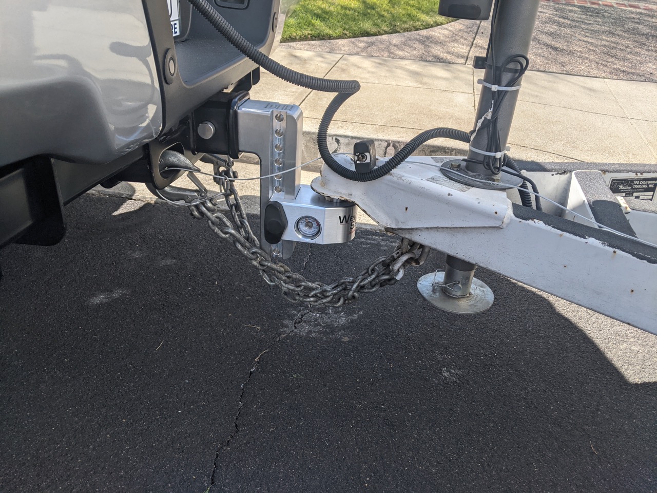A year or so we were talking about tongue weight scales. Since I needed a new ball mount/draw bar/whatever for the Ford (it's taller than the Chevy and has a 3" square receiver tube rather than 2") I decided to buy one of the weigh-safe ones with a built-in scale.