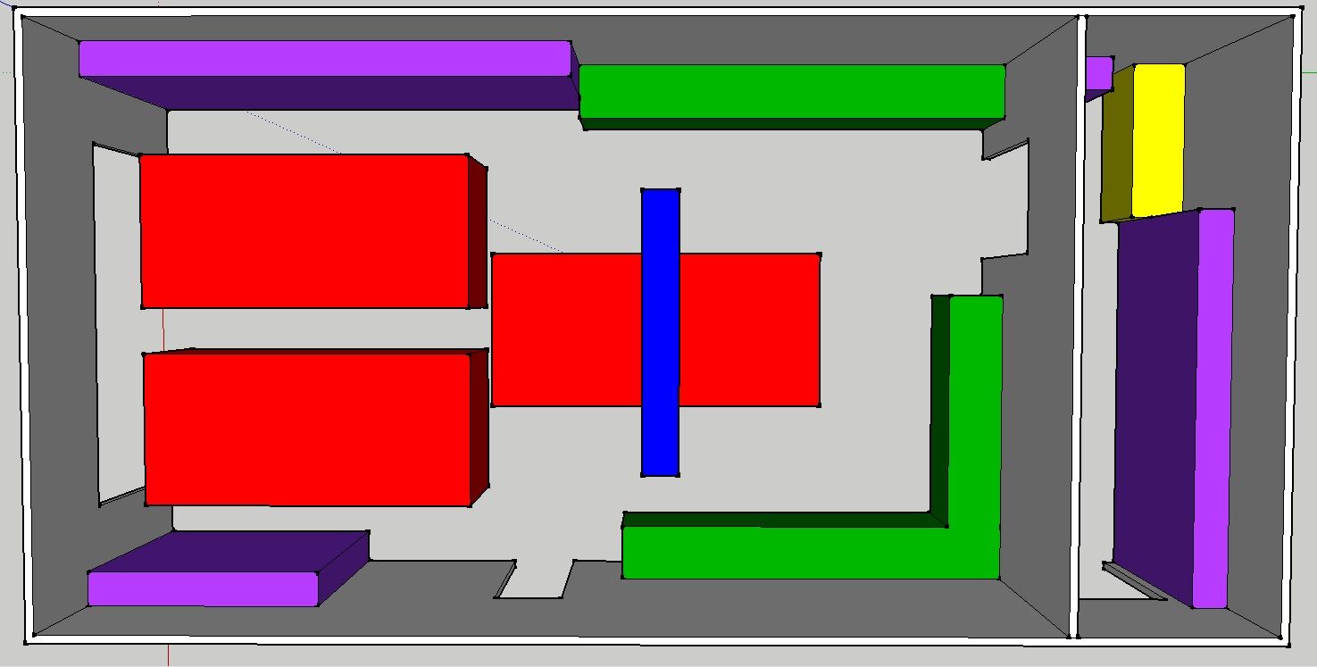 Purple = Shelves (18" deep)