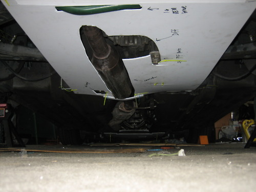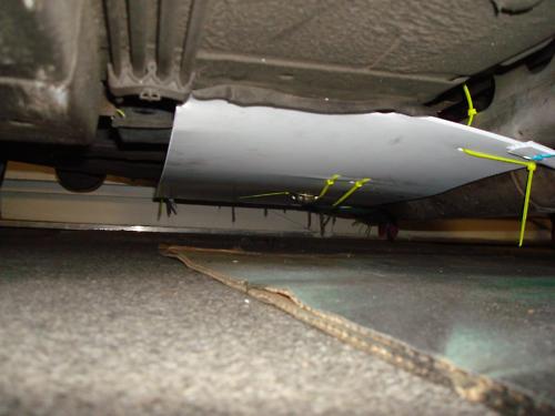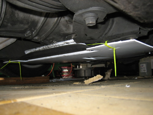 Top piece goes under front sub.. I cut out an outline for the front jack point and a rectangle slit for oil changes. Oil temps are within normal operating range. Oil pan surface temps were not recorded pre- or post-... I don't think it's an issue.