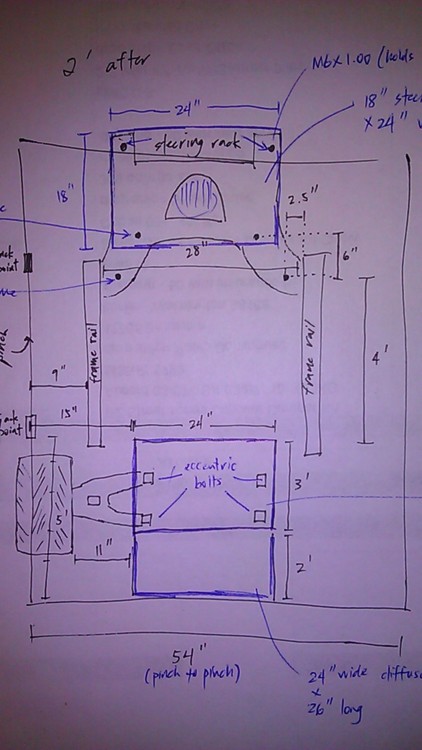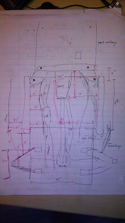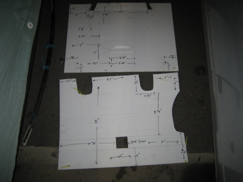24" wide x 36" long, meets the floor and 5" past the rear eccentric bolts/subframe to mate along with the Lexan diffuser (also a prototype).