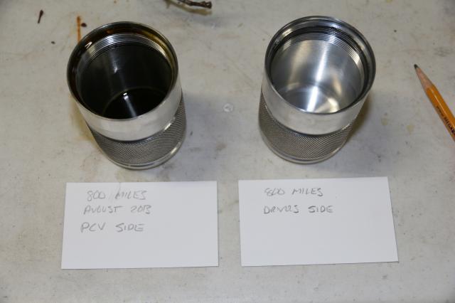 Here's the contents of the cans. 800 weekender road miles (no race or autocross) since install. Left one is the PCV valve side and right one is the vent (drivers) side can.