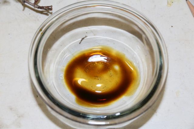 Poured it out in a glass bowl to take a closer look. It doesn't seem like there is much water or anything else in it, its mostly oil