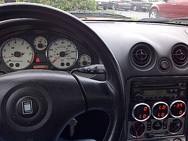 Skidude: You have an 02 NB? This might interest you... The 04 and 05 cars came with a low fuel level warning light built into the cluster. All NB's are wired for this, all you need is a 04-05 cluster. Pull the fuel gauge out of that cluster and stick it in a single gauge housing and stick that below the radio/in the glove box, and then mount your wideband in the hole. Coincidentally, this is now my plan using a VEI Systems gauge, except I plan putting the wideband where the fake oil pressure gauge is, and then put a VEI oil press/temp gauge where the stock fuel gauge lives. (Credit for most of this idea goes to Hustler btw...)