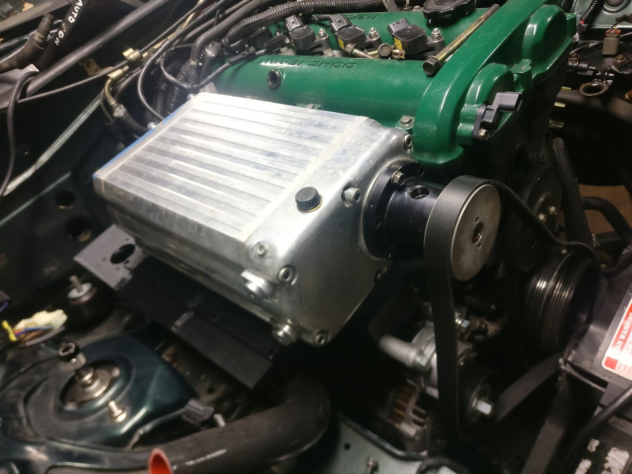 What's your mount setup like? intercooled/aftercooled? Custom Manifold? I'm curious as to how you setup yours, The smaller charger definitely helps placement of many things. 50mm less depth would make it much easier to build an intake setup on the back, mine will have to be some pretty tight bends.