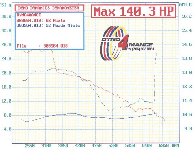 ) Mine made 140 hp with AFPR and JR Boost/Timing retard unit. Granted, the Dynodynamics dynamometer is said to read 10%~15% lower than a Dynojet.The charts show the before and after the supercharger installation.