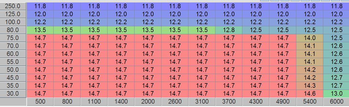 And just to check that i got it right. Any AFR above 14 is lean, and below 12.5 is good / reach. So the lower the number, the richer the mixture...