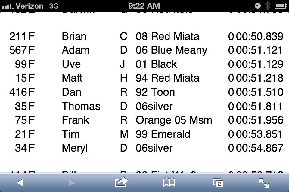 Here is a sample of super vs turbo in autocross. Two ~250hp turbo NC's on top and a 200+hp & 175hp supercharged in third and fourth. The boosted class in our club is pretty well prepped suspension wise with mixed power between 175-260hp both supercharged and turbo. Every race is a toss up and almost always a cluster within a few tenths. Typically, the fully prepped STR or other NA/NB steals FTD over all the boosted cars.