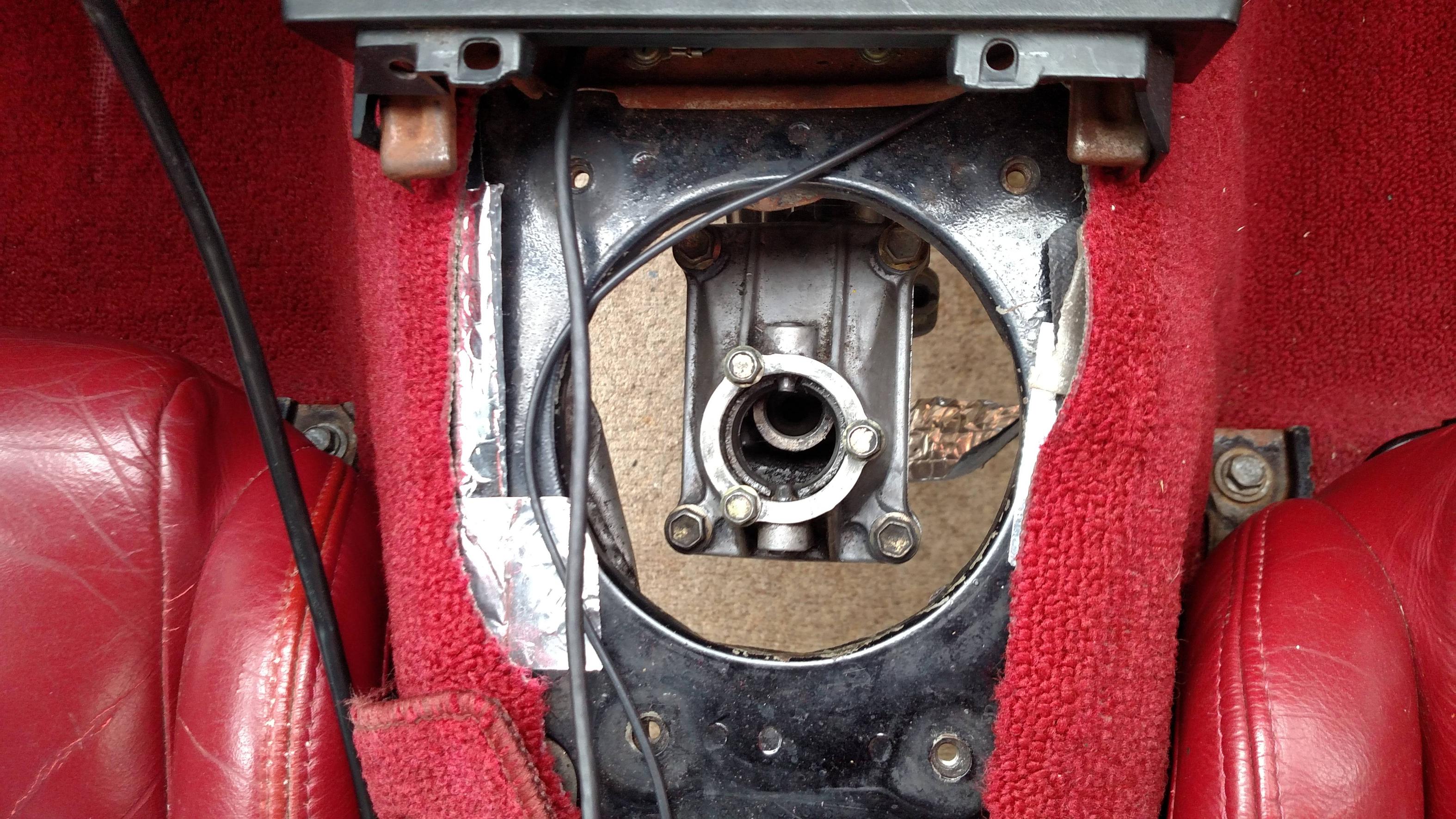 the trans was installed without that piece. so next step would be to install the turret piece. outside of it not lining up, the bolts for it are way too long to squeeze in the space between the tunnel and the turret. now im sure i can make it work, its all still loose. i can just pull the trans down a bit sand squeeze them in. i just wanted to make sure this is a normal thing. that im not missing something here. all signs to me say full steam ahead. everything is center like it belongs there. i just think it may be a small generational issue, a minute change happened. but sometimes it best to ask those who have been there before you.