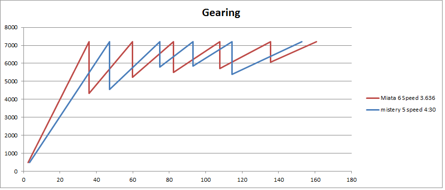If picked right a 6 speed will have 2 useful gears for autocross and 4 useful gears for the track. A 5 or a 4 speed can be optimized for one or the other but not both. The stock gearing in the 6 speed is Ok but I think it would be improved if it were closer ratios still. Second gear needs to be slightly taller for autocross and I think slightly less rpm drop between shifts 3-4, 4-5, and 5-6 would be faster on the track. On the track you really sort of want it to where being in any of two different gears at critical points will keep you on the power curve so you can adjust shift points to match for both the track layout and speed while staying at RPM’s that have the most throttle response and power.