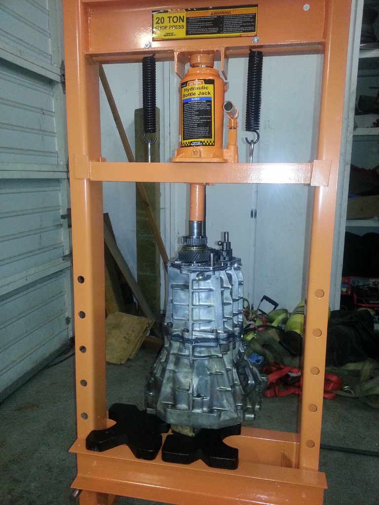 That is good to know now... I bought an MSM tranny with a 3rd gear grind. I've got it torn down and have a 3rd gear, synchro and 3-4 hub sleeve on order. I had a hell of a time getting the 6th hub off and actually destroyed my HB puller. Ended up buying a Snap-on puller off of the truck to get it off. I have a feeling it will be a bear to get back on too. My parts should come in tomorrow, I'll let you know if I come up with a way to get it to go on. I have a 6ft name brand 20 ton press so I shouldn't have trouble getting the whole tranny in the press.