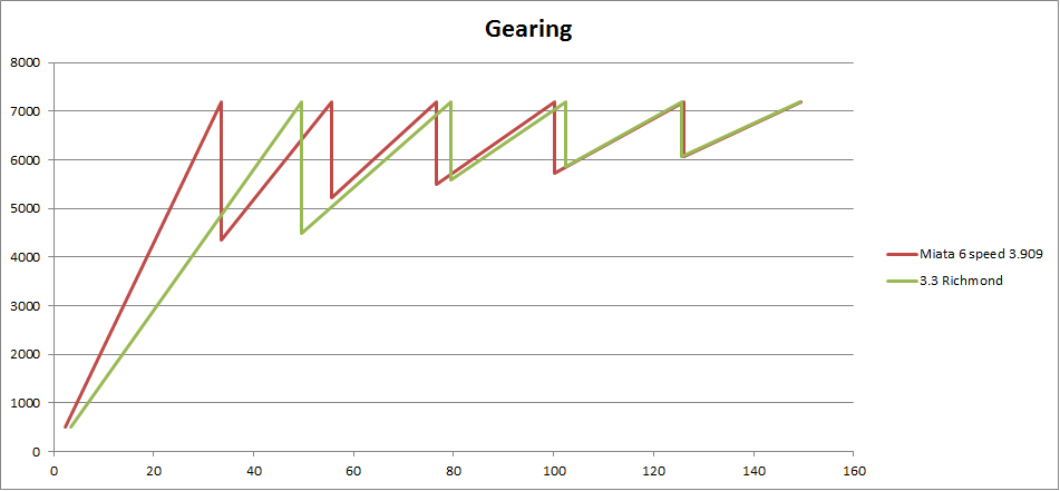 Bob, at the risk of drifting this thread off topic, does the potential of a 3.3 gear set from MiataRoadster change any of your thoughts regarding the best individual gear ratios to choose?