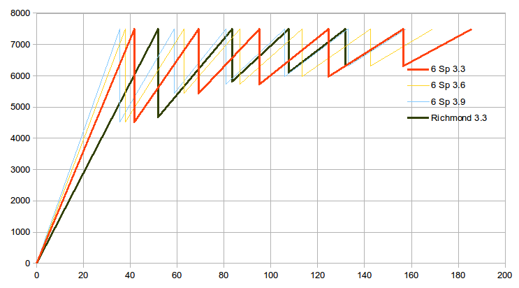 The 6th would be a street only gear for those who aren't that fast (7500 shift point in this graph though).
