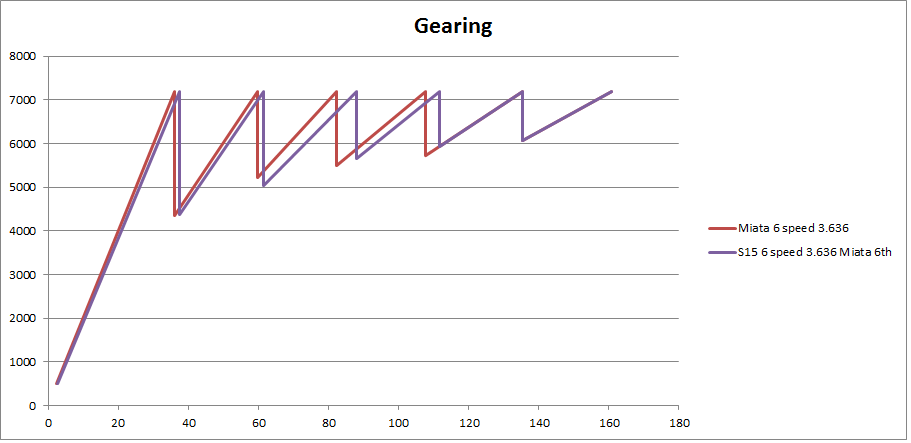 S15 box with Miata 6th: With this I would swap 6th with miata gears which is easy. The stock 6th is way tall and probably for fuel economy not good for using it in anger. The result is a slightly tighter 6 speed slightly more useful second. One could only hope that the 4th gear is stronger than the Miata version. seems eqivelent Pricing to Miata 6speed.